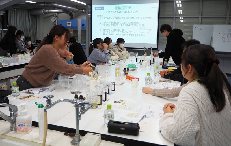 本講義は、同大学の正規授業である学問論演習「『和食』の文化を科学的に理解する」の一環として実施されたものです。本演習は、東北大学文学部教授でありUIC副理事長も務める坂井信之教授が担当教員で、企業や外部団体とも連携しています。UICは2016年から毎年本講義を担当し、座学・実食・実習を通じて、「だしのおいしさやうま味を体感し、うま味を伝える」ことを目的に実施しています。普段、だしを取って料理をする機会があまりない学生にとって、体感をとおして学べる本講義は貴重な機会となっており、毎年楽しみにされています。